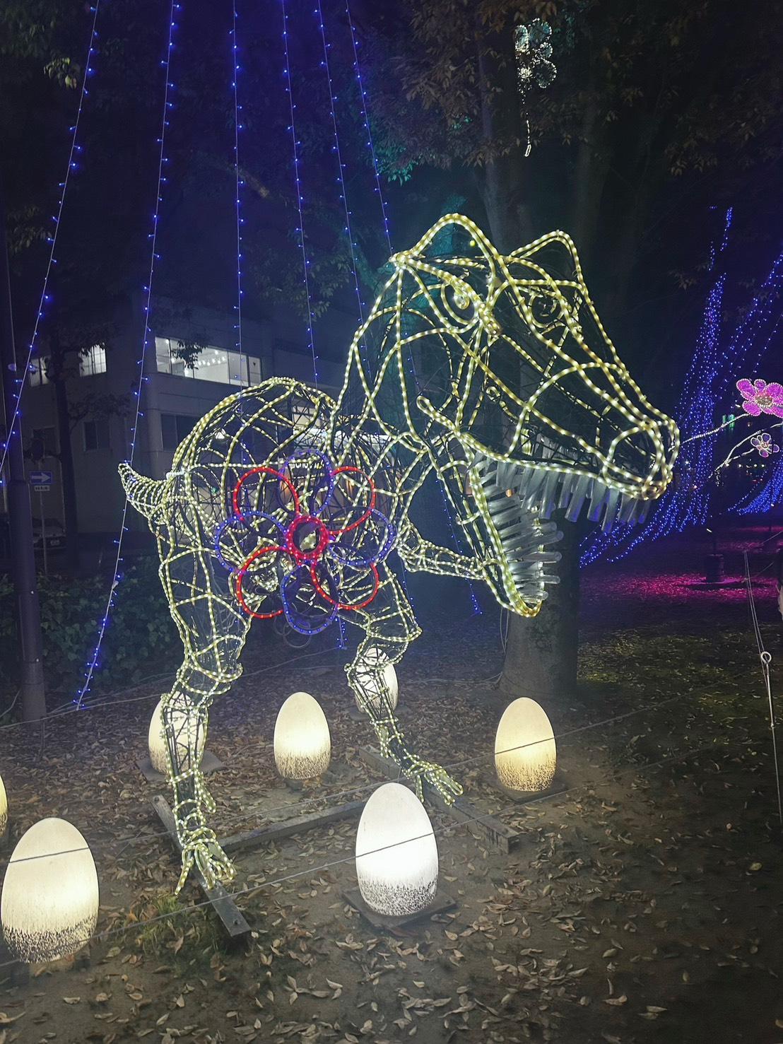 この前イルミネーションを見に行った時に、なんと恐竜の形のライトを発見しました🦕✨