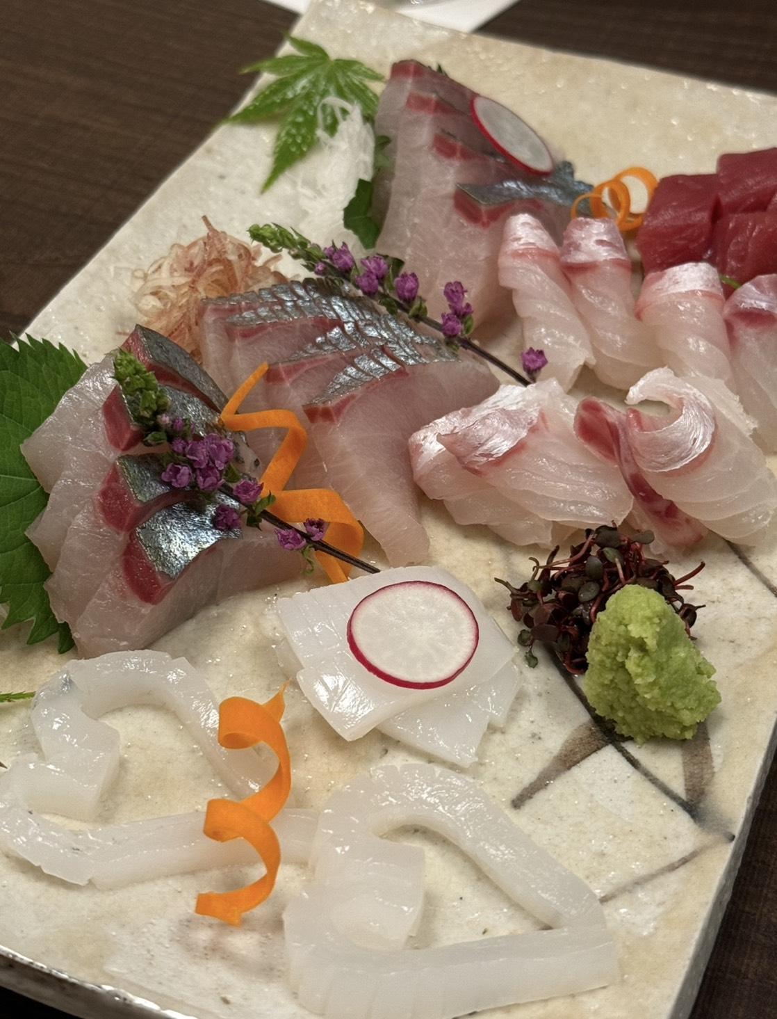 ロケの後はロケに協力してくださった「だし鍋割烹 山竹」さんがお刺身を切ってくださって食べました
