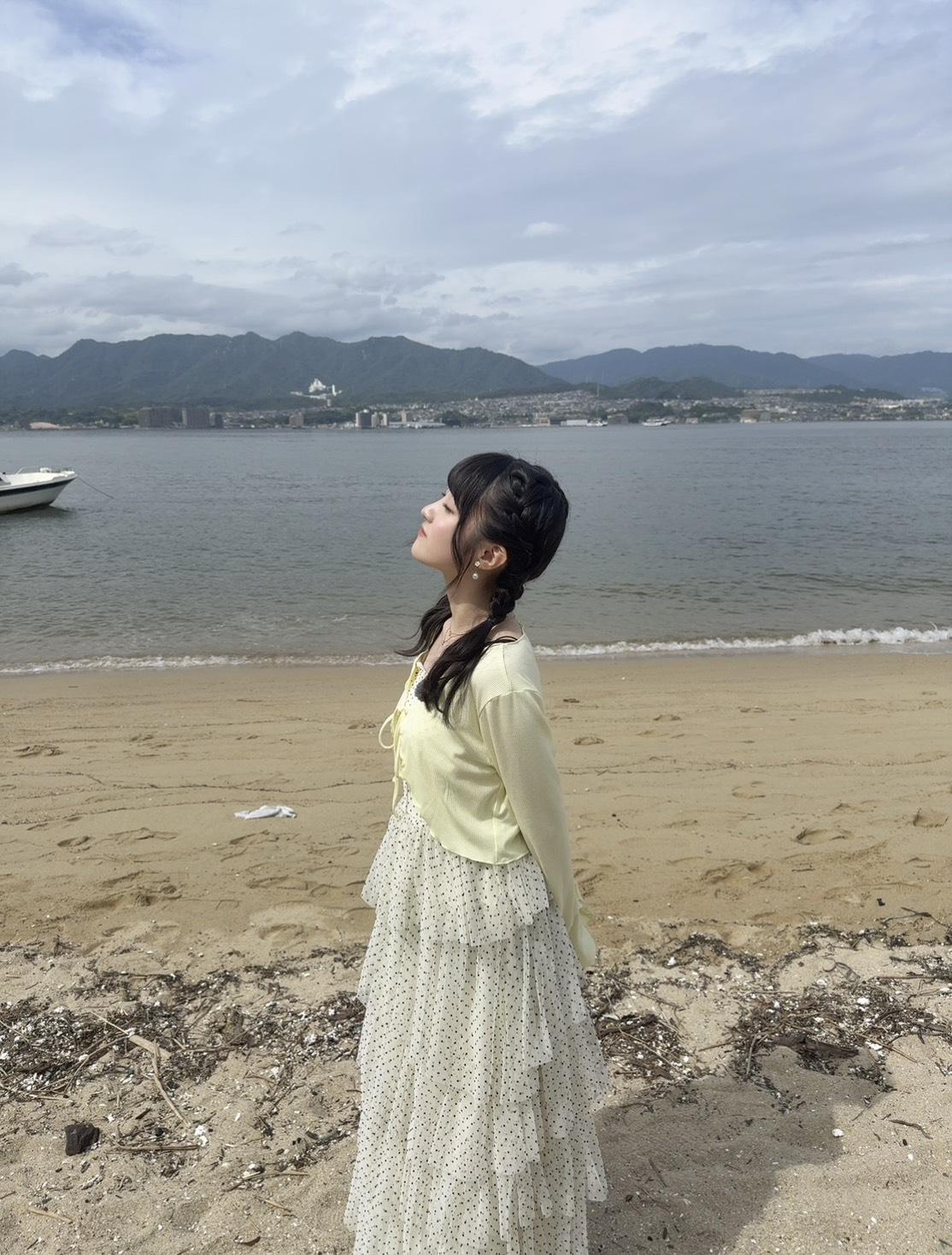宮島に行くということで、瀬戸内感を出そうと思って黄色の服を選んだ꒰ᐢɞ̴̶̷ ·̫ ɞ̴̶̷ᐢ꒱