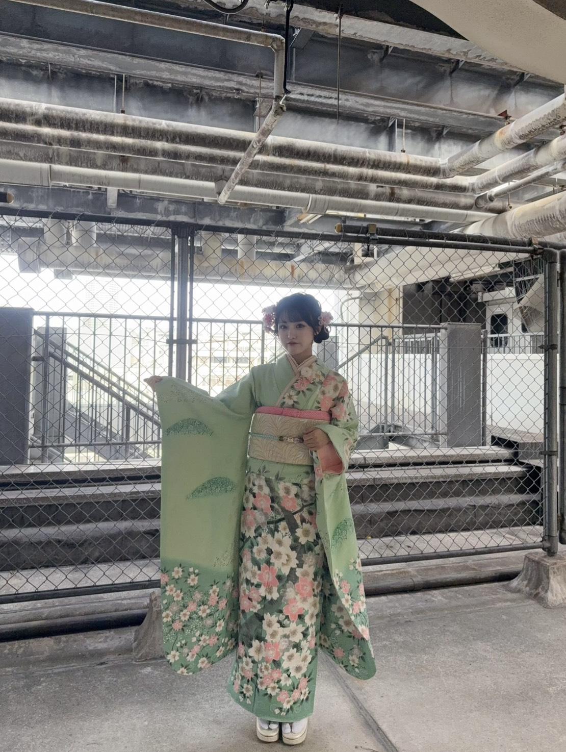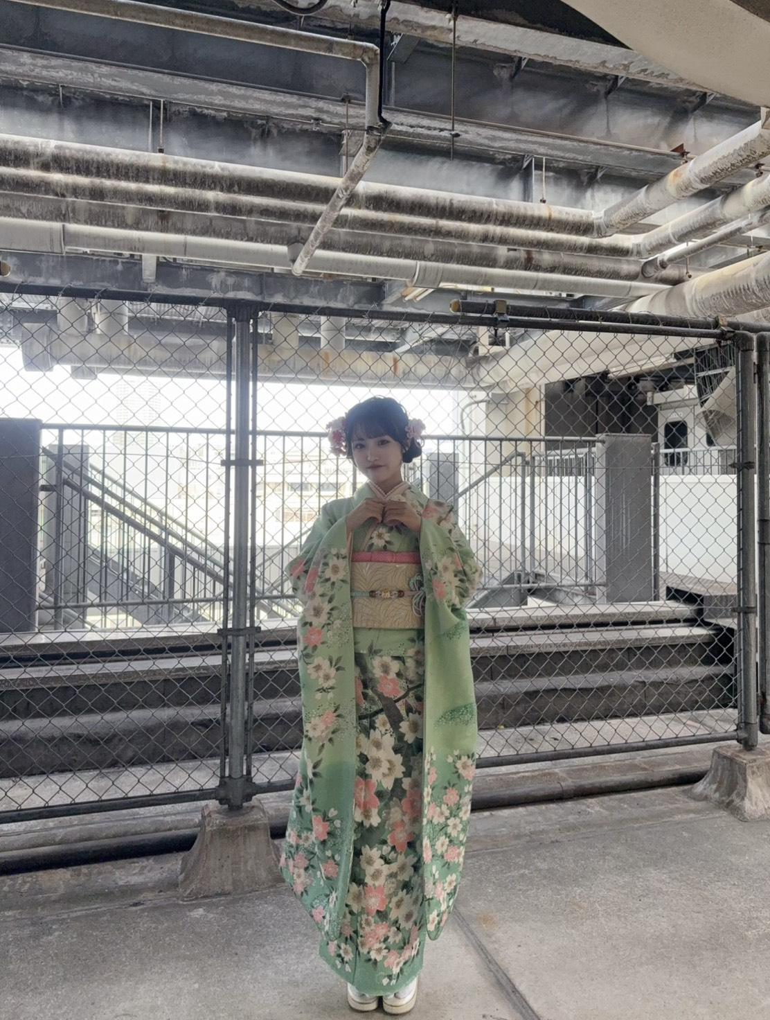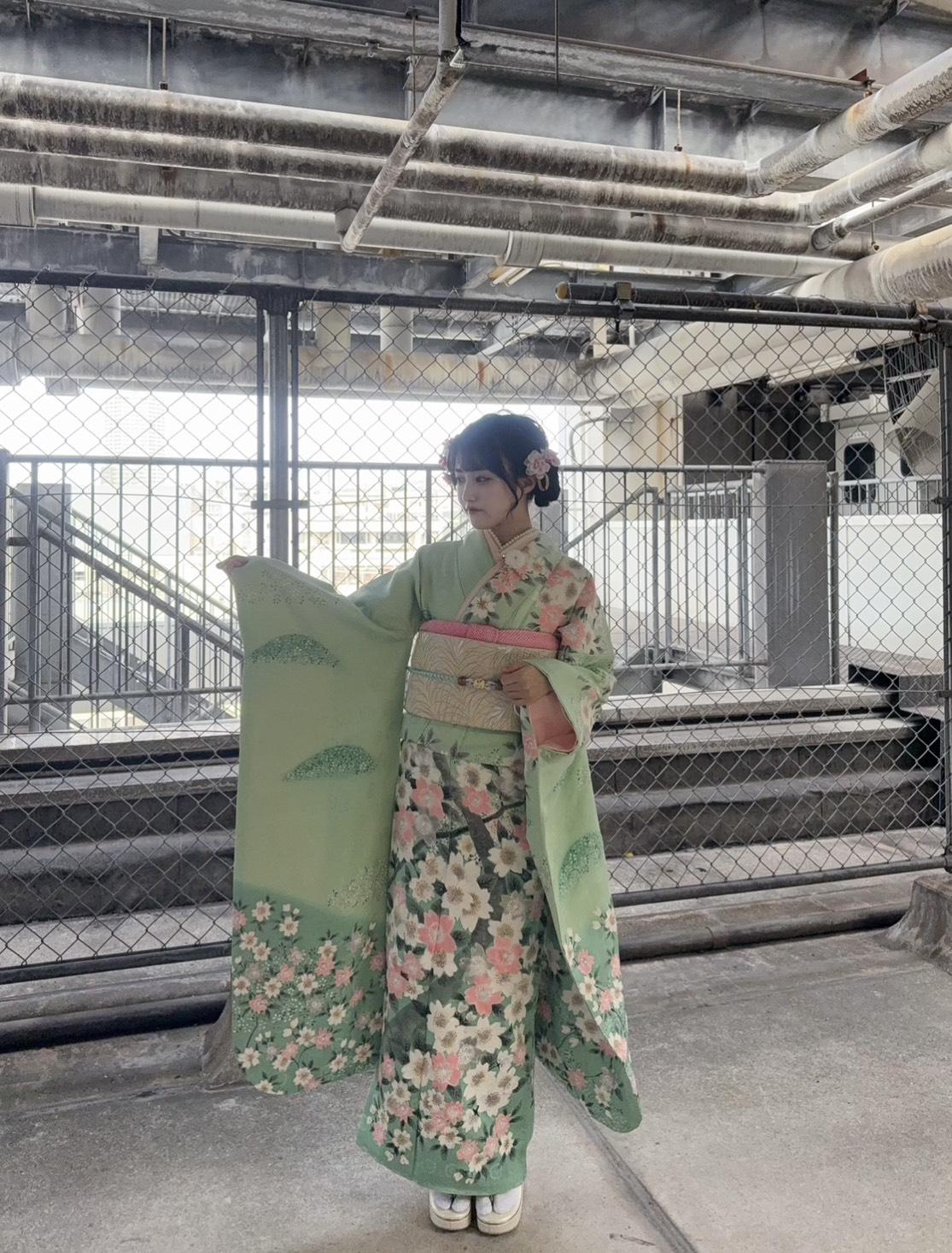 振袖はミントグリーン!