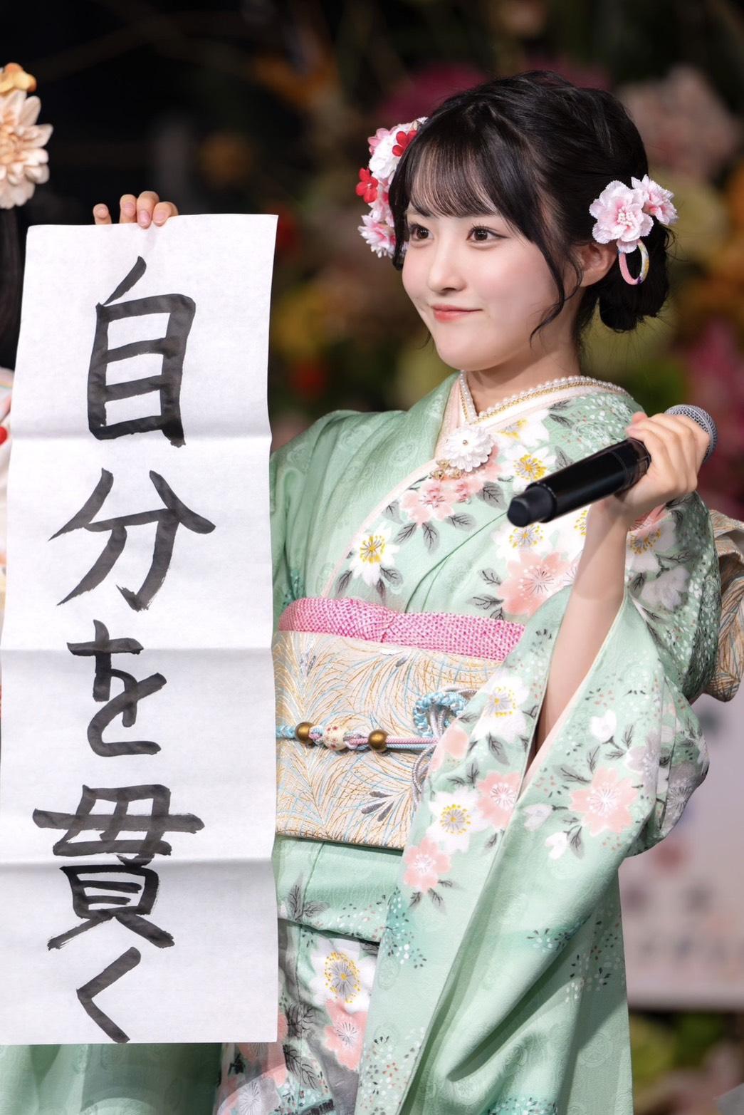 ここでは、はじめてファンの皆さんに振袖姿を見せることが出来て嬉しかったです。