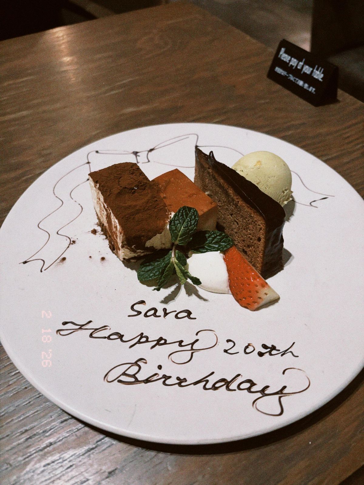 ご飯を食べ終わった頃にこんなプレートが運ばれてきて、びーっくり!!