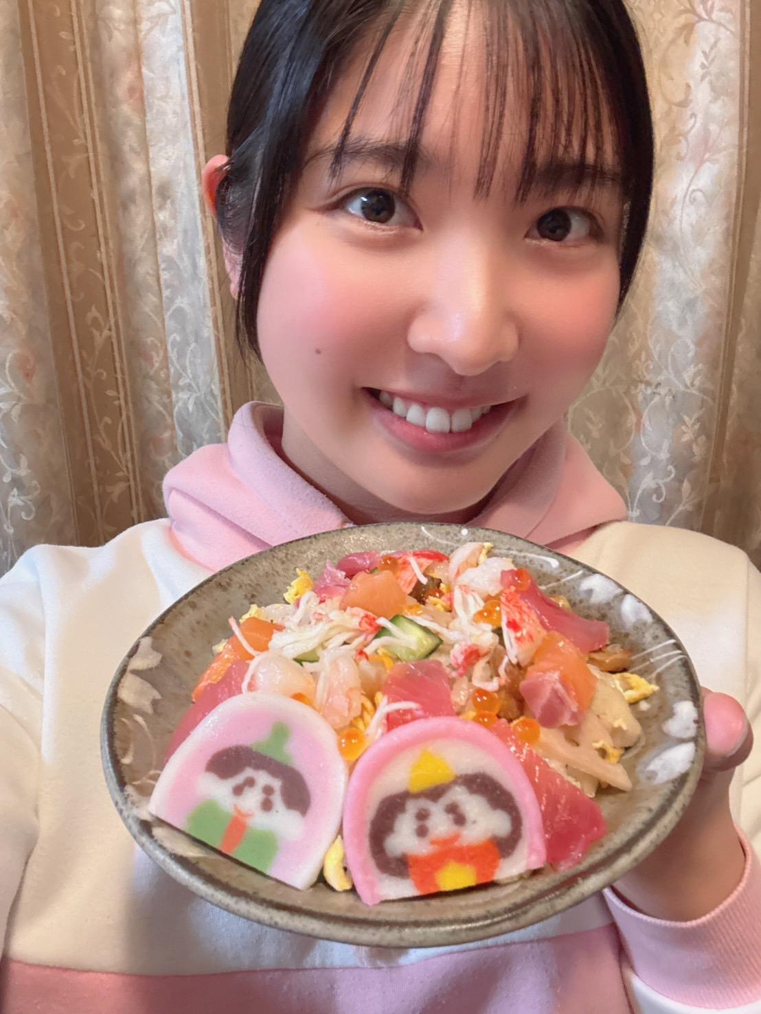 今年もお刺身いっぱい+お内裏様とお雛様のかまぼこが乗ったちらし寿司を頂きました~😋