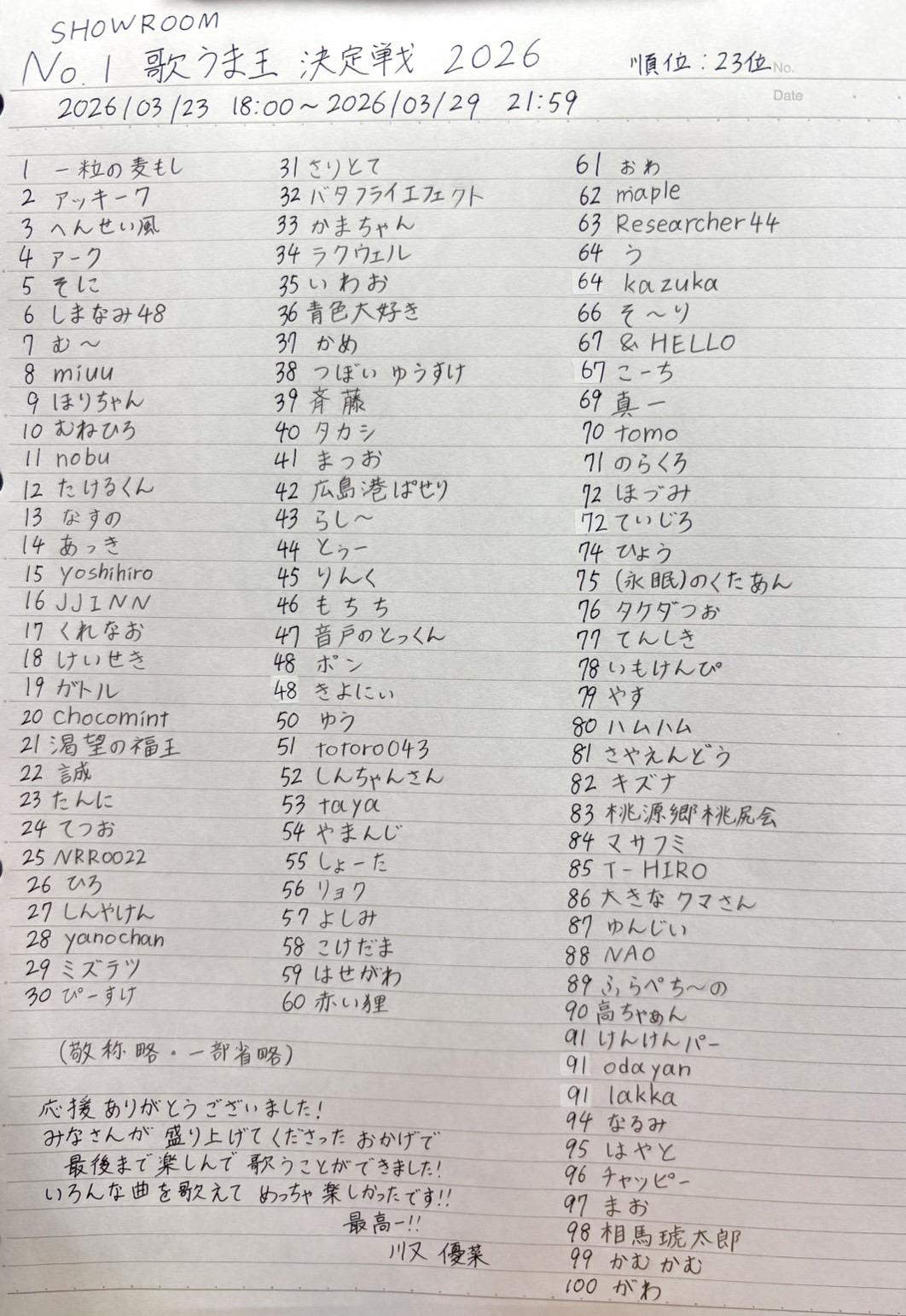 ⭐️SHOWROOM No.1歌うま王決定戦2026