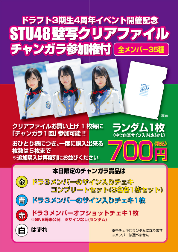 商品名:STU48特製壁写クリアファイル(抽選会参加権付)