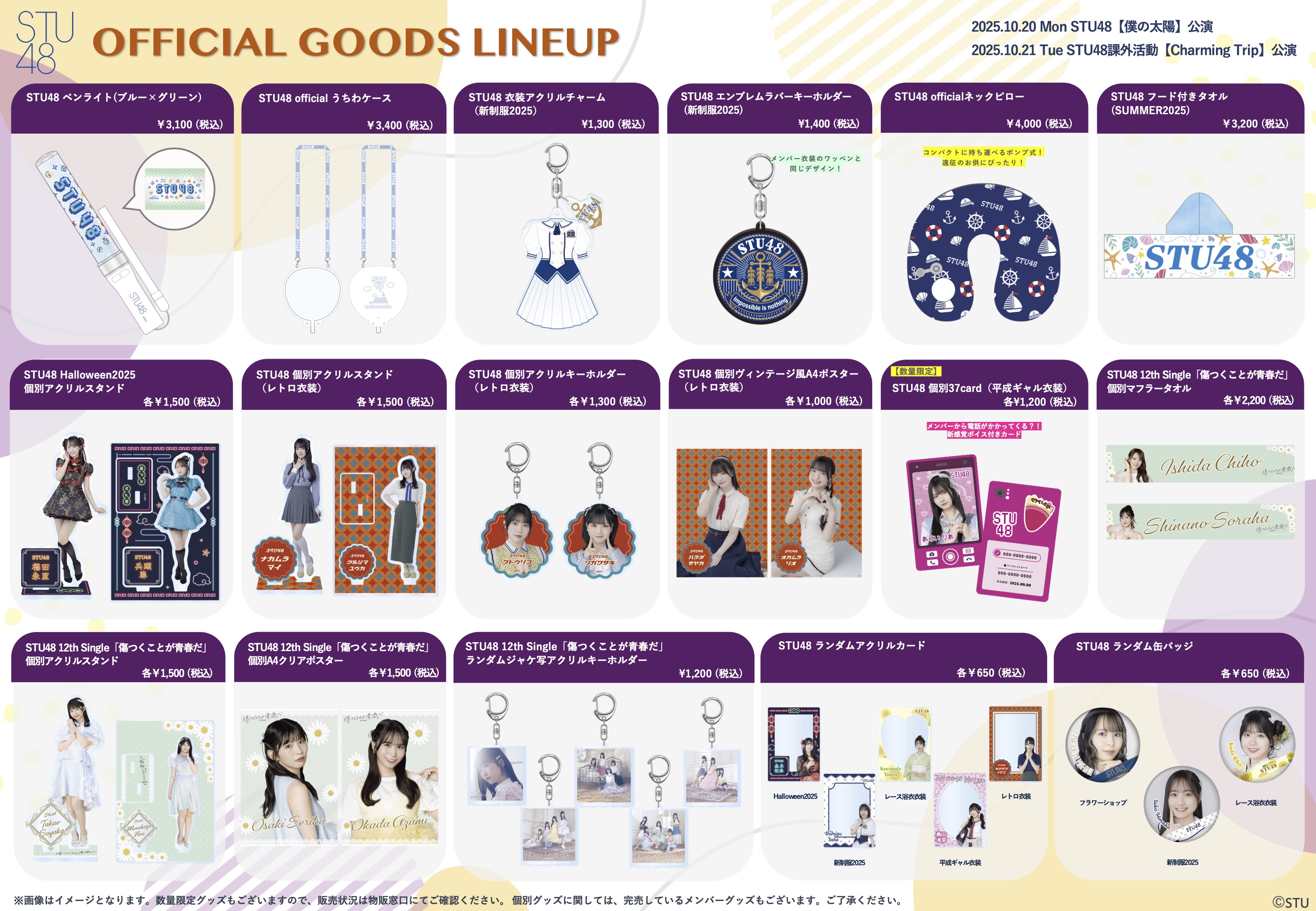 10月20日(月) STU48「僕の太陽」公演、10月21日(火) STU48課外活動「Charming Trip」公演、会場での物販実施のお知らせ