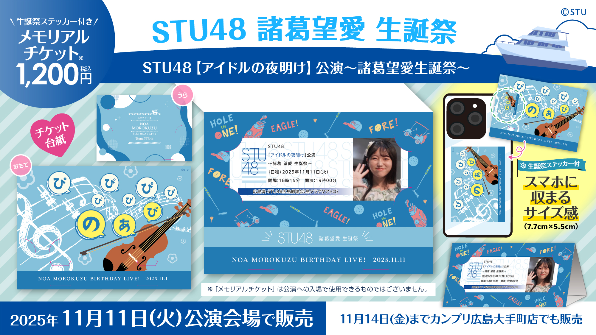 11月11日(火) STU48「アイドルの夜明け」公演~諸葛望愛生誕祭~、会場での物販実施のお知らせ