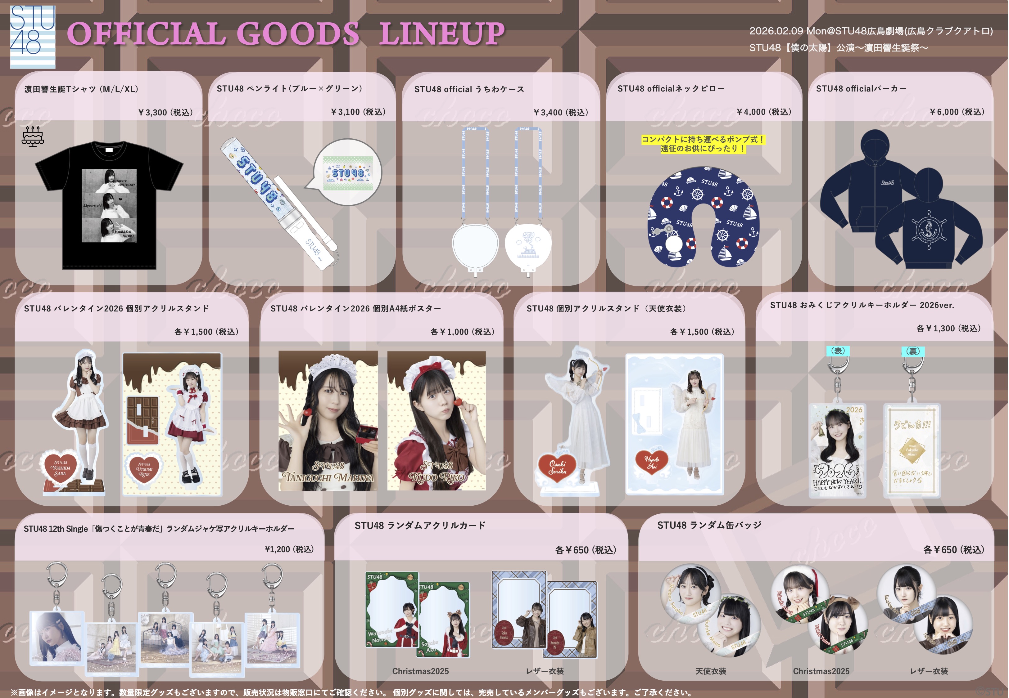 2月9日(月) STU48「僕の太陽」公演〜濵田響生誕祭〜、会場での物販実施のお知らせ