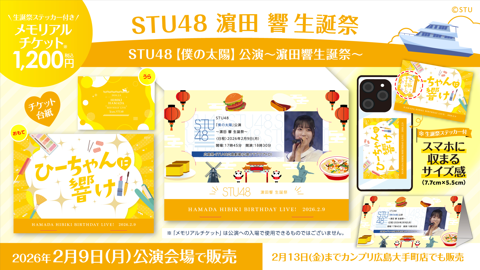 2月9日(月) STU48「僕の太陽」公演〜濵田響生誕祭〜、会場にて物販の実施が決定いたしました!