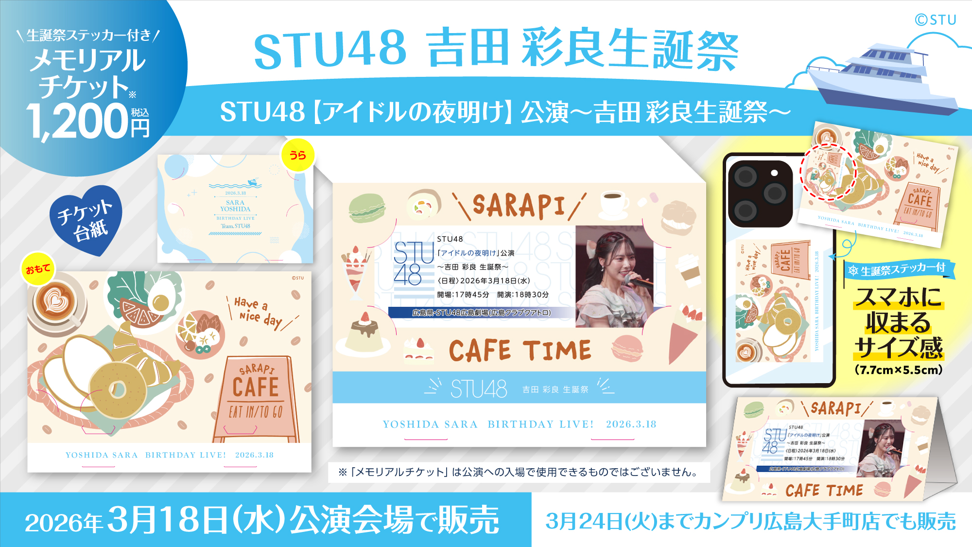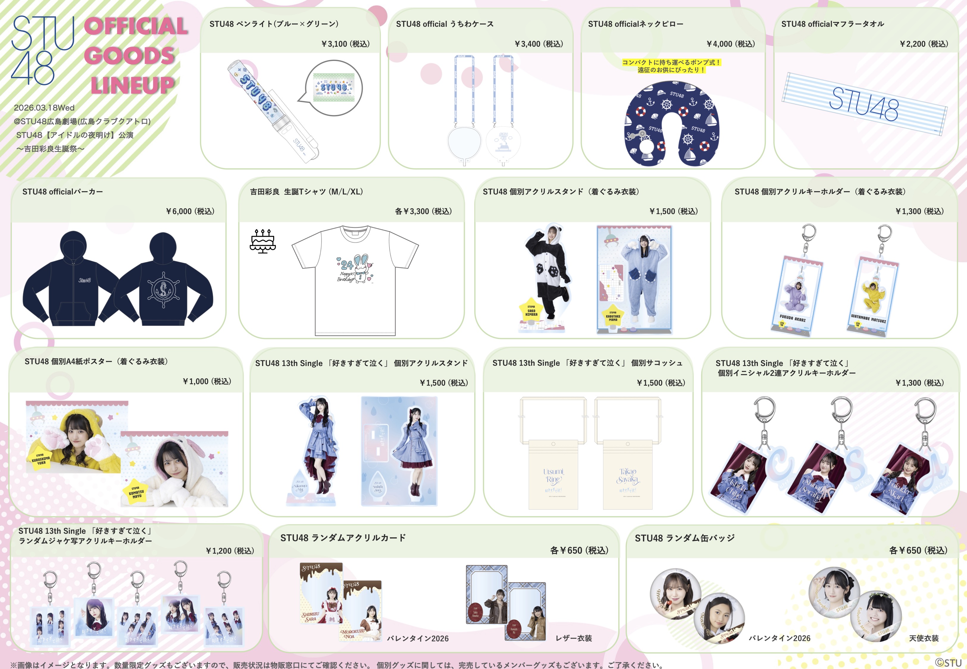3月18日(水) STU48「アイドルの夜明け」公演〜吉田彩良生誕祭〜、会場での物販実施のお知らせ