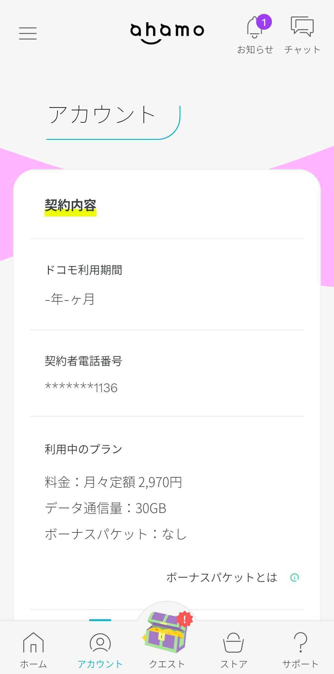 ③「利用中プラン」にて「月々定額2,970円」の記載にて確認