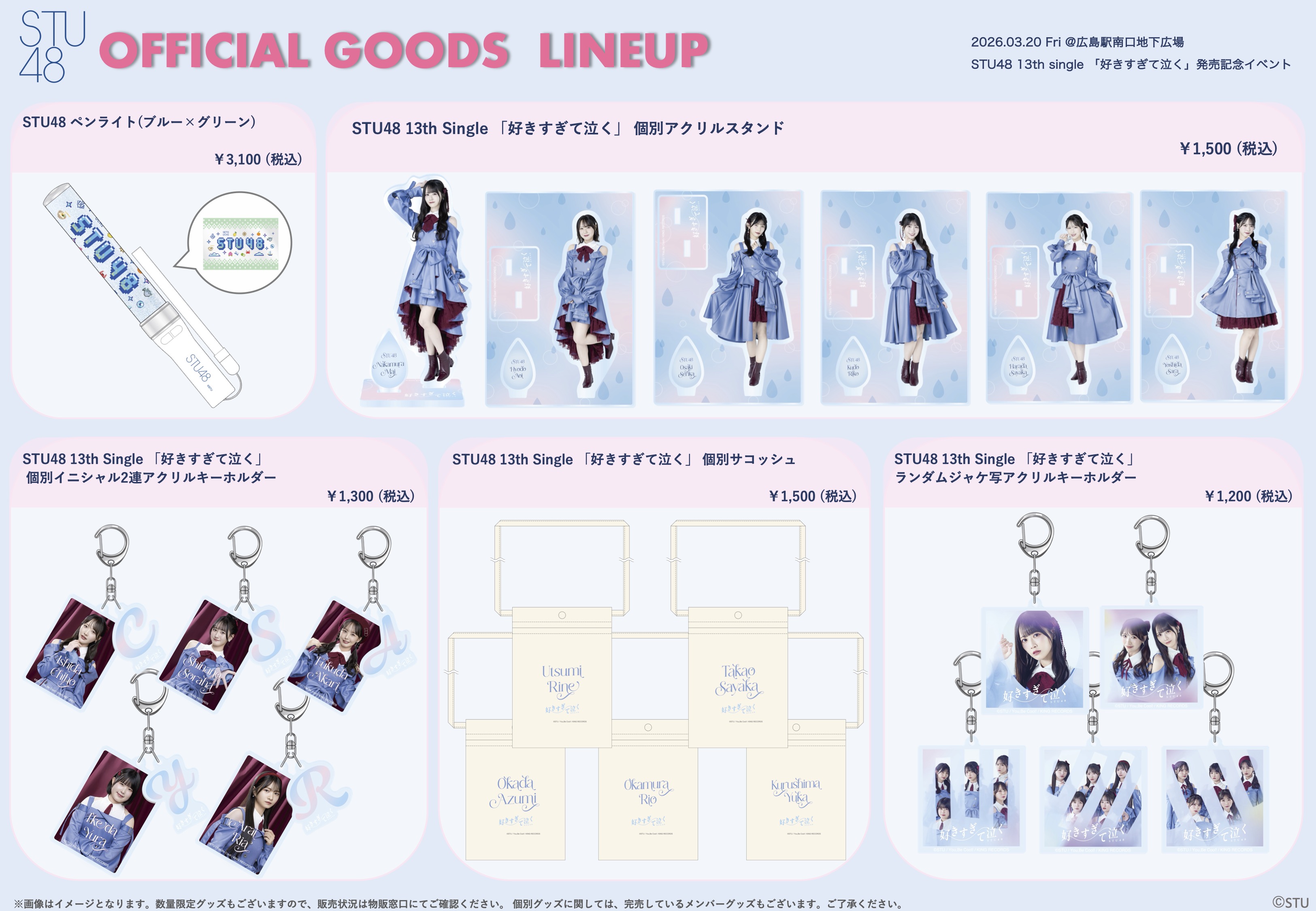 3月20日(金・祝)STU48 13thシングル「好きすぎて泣く」発売記念イベント、会場での物販実施のお知らせ