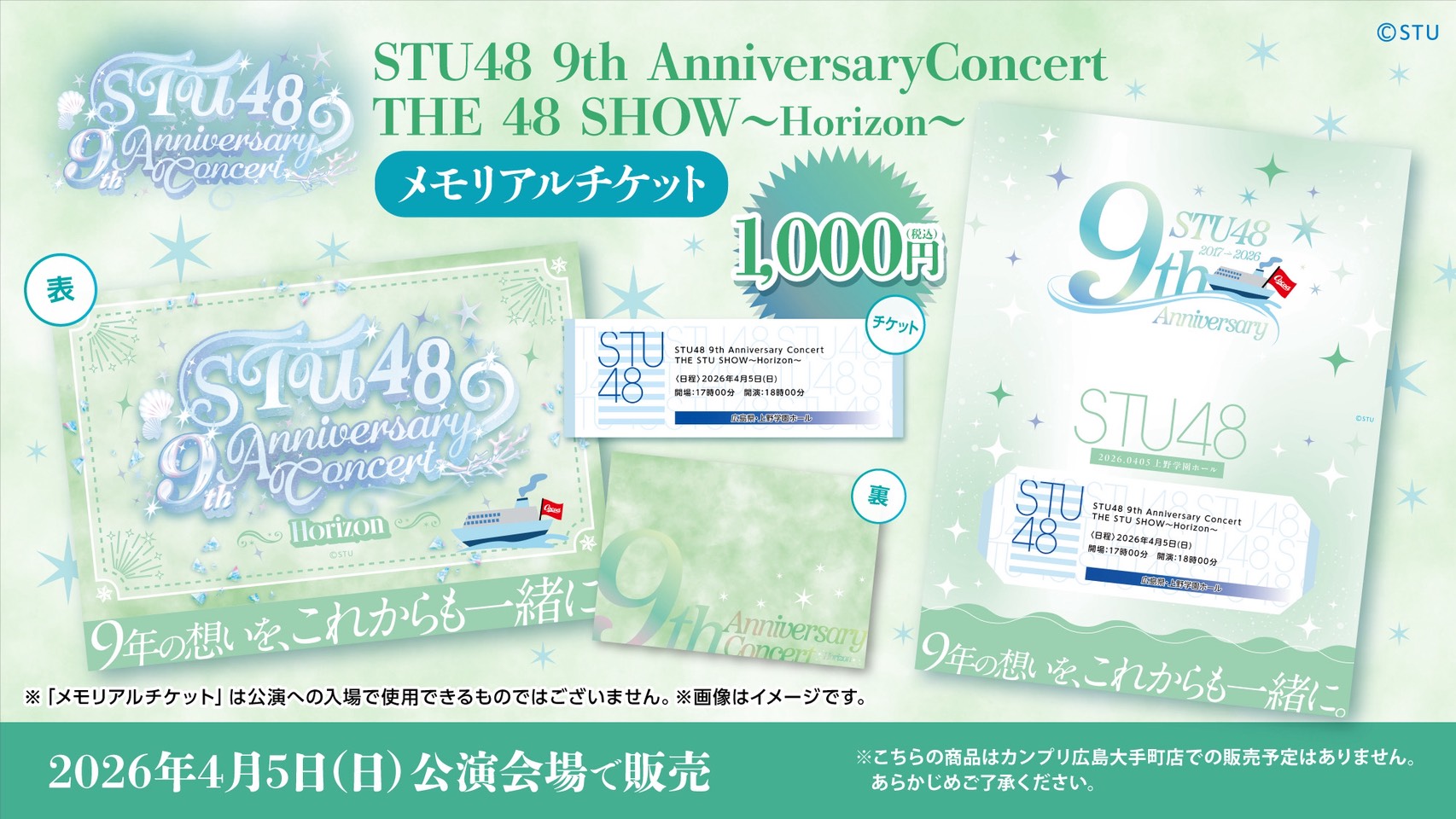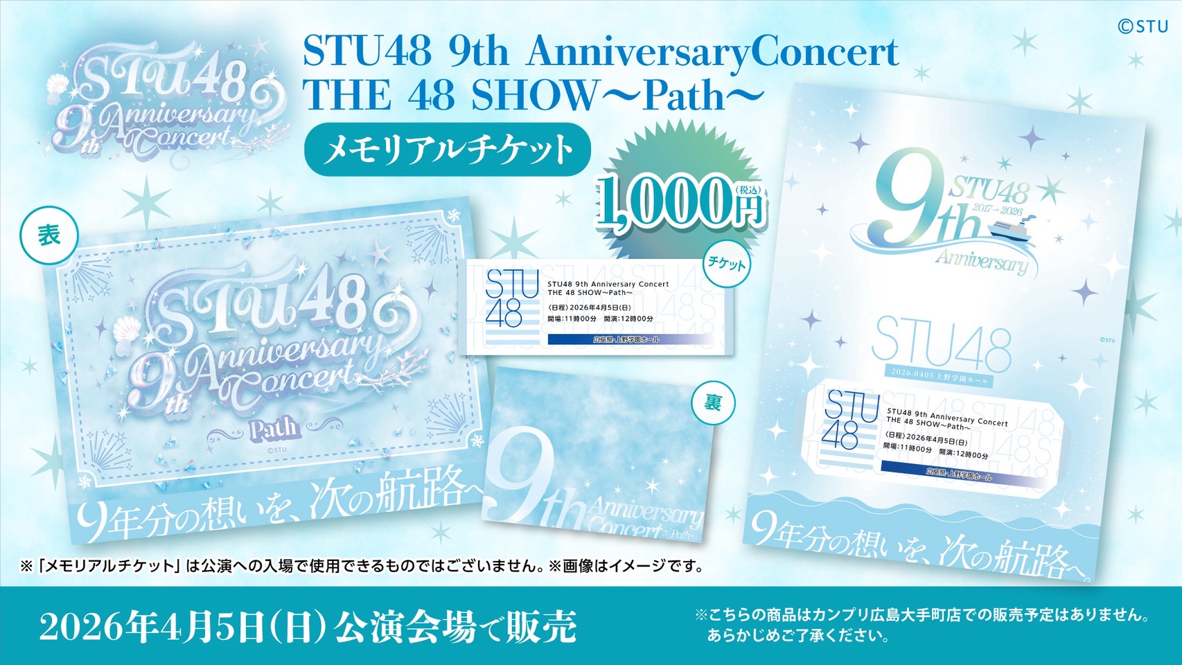 4月3日(金)〜5日(日) STU48 9th Anniversary Concert、会場での物販実施のお知らせ