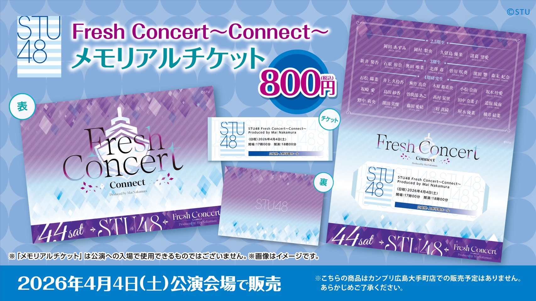 4月4日(土) 1部 STU48 中村舞ソロコンサート「My Story」、2部STU48 Fresh Concert〜Connect〜 Produced by Mai Nakamura