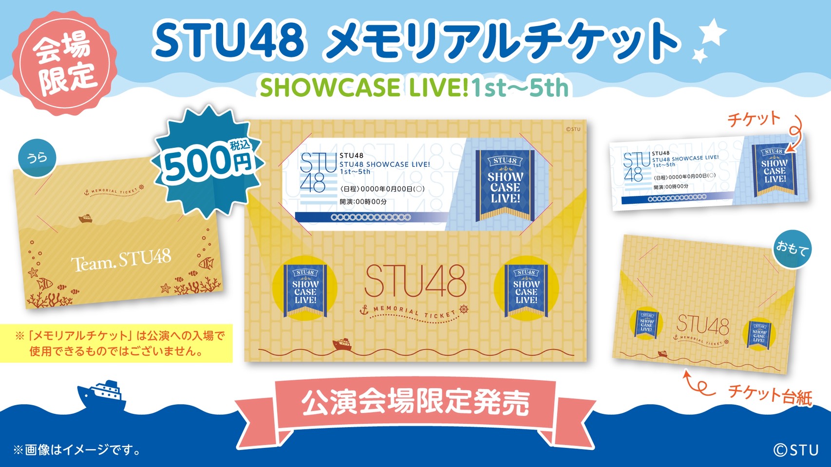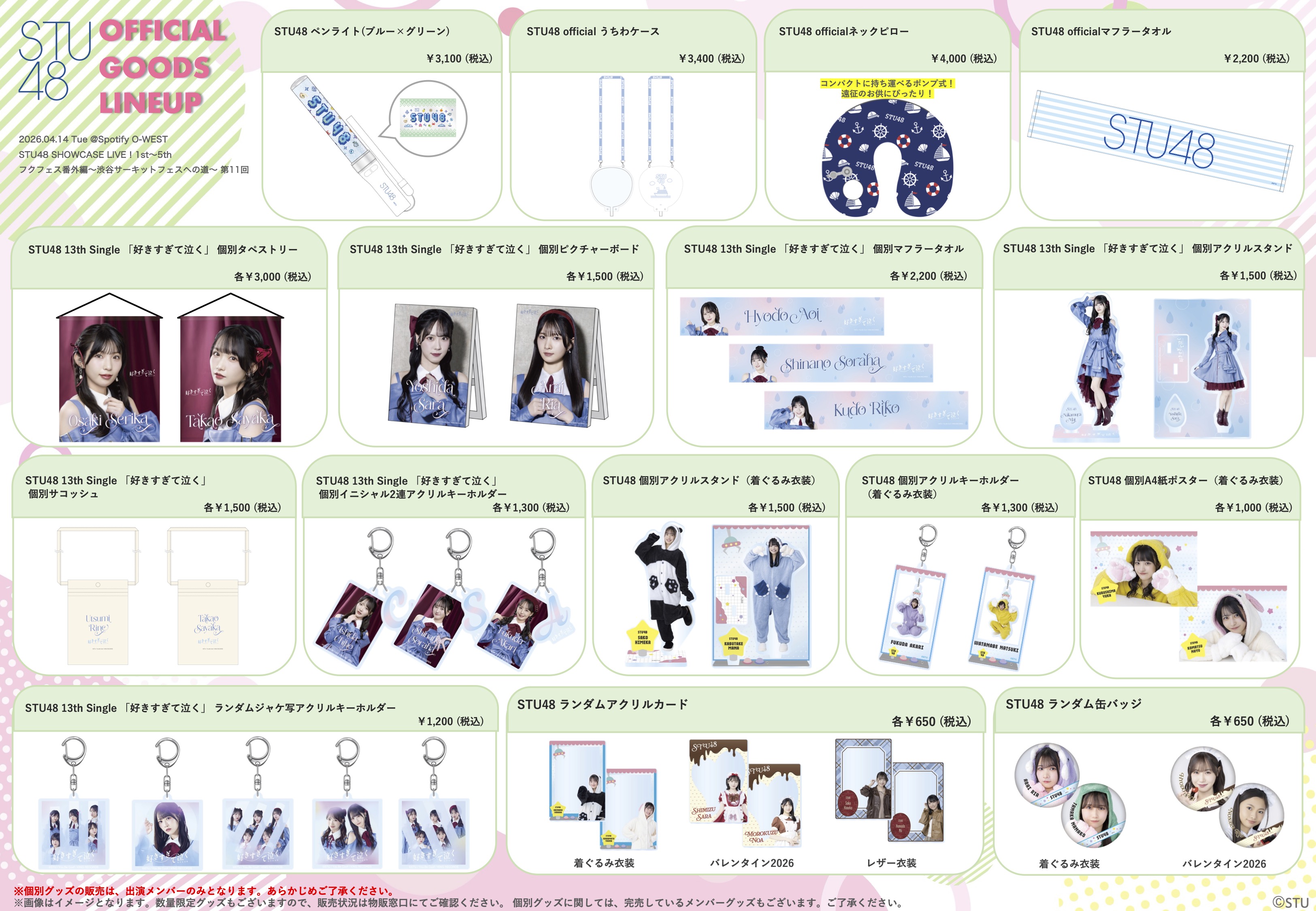 4月14日(火) STU48 SHOWCASE LIVE!1st〜5th、フクフェス番外編〜渋谷サーキットフェスへの道〜 第11回、会場での物販実施のお知らせ